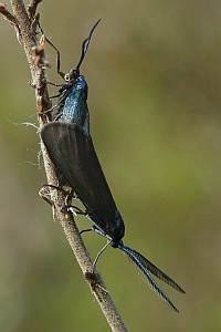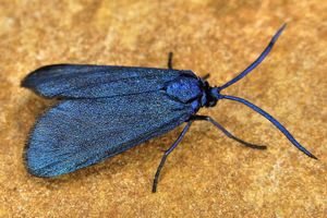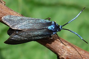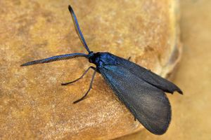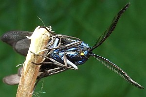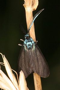 Nach einem Hinweis von Gerhard Tarmann [Forum] ist Rhagades pruni die einzige der in Deutschland vorkommenden Zygaenidae-Arten mit einem gelben Rüssel; alle anderen haben einen dunklen Rüssel.