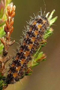 11: frisst an Gewöhnlicher Moosbeere (Vaccinium oxycoccos): Deutschland, Baden-Württemberg, Alpenvorland, Waldburg-Hannober, Übergangsmoor mit Vaccinium oxycoccos-Rasen, 660 m, 3. Mai 2018, Tagfund (Freilandfoto: Gabriel Hermann)Forum
