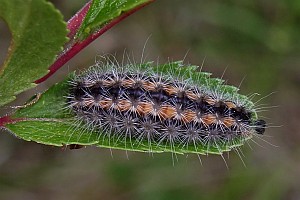 14: ♀: Deutschland, Niedersachsen, Region Hannover, Seelze, 50 m, Hannoversche Straße, Einkaufsmeile nahe großflächigen Gleisanlagen, Raupen an Cotoneaster sp., Rubus sp. und Rosa sp. (Zwergmispel, Brombeere, Rose), leg. 11. Mai 2024, Schlupf 4. Juni 2024 (cult., det. & fot.: Tina Schulz)Forum