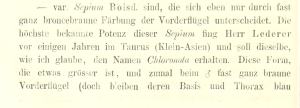 - Erstbeschreibung: Staudinger, O. (1870-1871): Beitrag zur Lepidopterenfauna Griechenlands. — Horae societatis entomologicae rossicae 7: 3-304, pl. I-III. St. Pétersbourg (V. Bésobrasoff & Comp.).