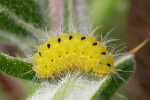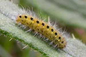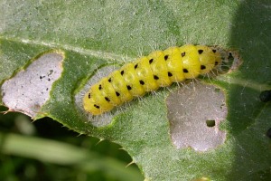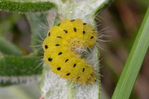 Die Raupe lebt an verschiedenen Kratzdisteln und Disteln und nahen Verwandten dazu. Nach den Ausführungen von Hofmann & Tremewan (2020: 156-158) gibt es lokale Vorlieben, so dass auch in der Zucht andere Arten der Gattung verweigert werden können. Andererseits wurde in einer Zucht Cirsium vulgare gegenüber C. arvense bevorzugt, obwohl es zu Ersterer noch gar keine Freiland-Raupenfunde gibt. Da auch gelbblühende Cirsium-Arten genutzt werden, ist die Liste noch nicht vollständig.