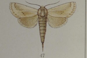 Brandt (1938: 699): „(Taf. V, Fig. 46, 47). ♂-Fühler kurz doppelt gekämmt, beim ♀ einfach. [...] Sine-Sefid, Mian-Kotal und in Comèe.“