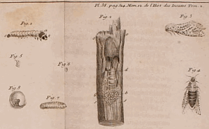 • de Reaumur (1736): Memoires pour servir à l'histoire des insectes 2: i-xlvj, 1-514, pl. 1-40. Paris (Imprimerie royale).