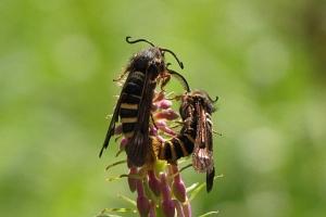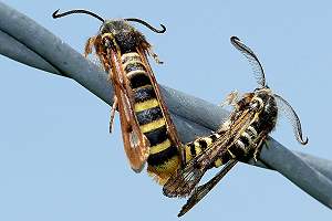 - Bettag, E. (1963): Bembecia hylaeiformis in der Pfalz (Lep., Aegeriidae). — Entomologische Zeitschrift 73 (24): 270-271. Ex libris Jürgen Rodeland.