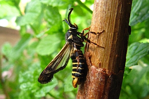 Wer lieber auf Nummer Sicher gehen möchte, schneidet den Trieb auf etwa 15-20 cm Länge ab und stellt ihn dann senkrecht in ein Gefäß. Nach ein paar Wochen sollten mit ein wenig Glück die Tiere schlüpfen.