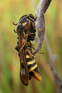 Gegenüber P. bohemica die letzten Ringe nicht breiter als die anderen, Palpen teilweise mit schwarzen Schuppen und Thorax ohne gelben Fleck unter den Flügeln. (Text: Zdeněk Laštůvka)