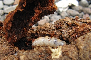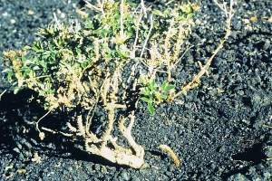 Die Raupen leben von Meereshöhe bis gegen 2600 m in verschiedenen Schmetterlingsblütlern. Auf allen drei Inseln ist dies der Harzklee (Psoralea bituminosa) als wichtige Nahrungspflanze auf Asche- und Schlackeböden. Weiterhin kommt die Art noch in verschiedenen Hornkleearten vor: auf Teneriffa in Lotus campylocladus, auf La Palma in Lotus hillebrandii, auf Gran Canaria in Lotus spartioides und L. leptophyllus. Alle Entomologen sollten es im Urlaub nicht versäumen, nach der Raupe zu suchen. Sie ist in krüppeligen Kümmerexemplaren schnell und z.T. in großer Zahl zu finden. Auf Gran Canaria sah ich im Dezember am Leuchtturm Arinaga ganz frische Exuvien, und aus Fraßstücken schlüpften bereits im Urlaub zehn Falter. Möglicherweise fliegt die Art in dieser Höhenlage ganzjährig.
