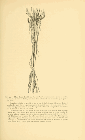 Die Raupe lebt in der Wurzel von Hedysarum coronarium und wurde in Tunesien als Schädling an dieser dort als Viehfutter angebauten Pflanze festgestellt. Auf Sardinien lebt die Raupe in Lotus creticus und Psoralea bituminosa.
