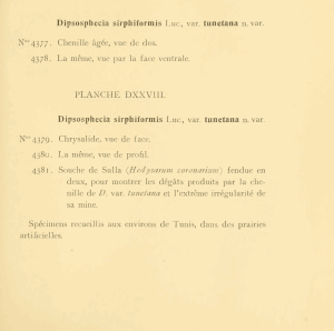- Bezug der Indikation in der Beschreibung als var. tunetana: Le Cerf, F. (1916): Aegeriidæ de Barbarie. — In: Oberthür, C. (1916): Études de lépidoptérologie comparée 11 (Planches): 11-16 (Explication des Planches), pl. CCCXVI-CCCXXII. Rennes (Imprimerie Oberthür).