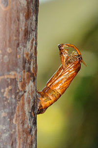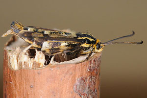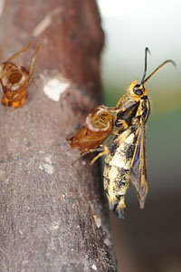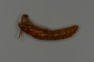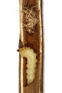 Larve des Bockkäfers Oberea histrionis, die in ähnlicher Weise wie die Raupe von Ch. hungarica lebt
