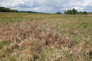 Vorjährige Euphorbia lucida-Stängel sind graubraun bis schokobraun und fast immer dünner (8-12 mm) als die Stängel vom Euphorbia palustris (meist 12-15 mm). Zudem sind die vorjährigen Pflanzen kleiner und die Spitzen weit weniger verzweigt und buschig als bei Euphorbia palustris, die auch die deutlich dichteren Horste bildet und in Criewen zumeist direkt im Uferbereich von Gräben zu finden ist. Euphorbia lucida dagegen besiedelt die Wiesenflächen des Polders. Beide Pflanzen können aber direkt nebeneinander vorkommen. Hier fällt dann auf, dass die Eu. lucida-Stängel meist schon nah am Wurzelansatz hohl sind, während Eu. palustris-Stängel im unteren Bereich noch viel Mark enthalten [Alessandro Kormannshaus im Forum]