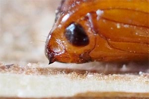 Im Vergleich mit der Raupe produziert die Käferlave lange Chips und hat keine Beine.