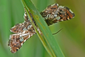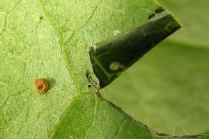 1-2: Raupenwohnungen in Blattspiralen von Clematis vitalba: Deutschland, Thüringen, Göschwitz (bei Jena), Kalktrockenrasen in Südlage, e.o., ♀ leg. im Juni 1992, Juli 1992 (Studiofotos: Heidrun Melzer), leg., cult. & det. Heidrun MelzerForum