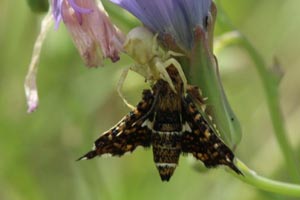 1: Thomisus onustus ♀ cf.: Schweiz, Wallis, Savièse, Weinberg, ca. 500 m, 15. Juni 2017, Tagfund (Freilandfoto: Helene Otto), det. Spinne Karola WinzerForum