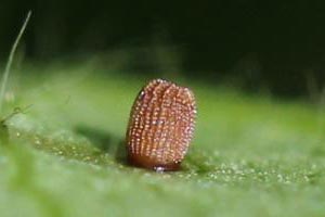 1: Deutschland, Thüringen, Göschwitz (bei Jena), Kalktrockenrasen in Südlage, ♀ zur Eiablage gebracht an Waldrebe, Juni 1992 (Studiofoto: Heidrun Melzer), leg., cult. & det. Heidrun MelzerForum