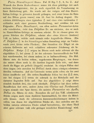- Erstbeschreibung: Staudinger, O. & A. Bang-Haas (1882): Ueber einige neue Parnassius- und andere Tagfalter-Arten Central-Asiens. — Berliner Entomologische Zeitschrift 26 (1): 161-177, pl. I-II.