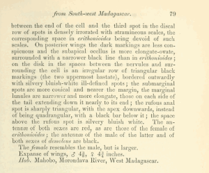 - Erstbeschreibung: Grose Smith, H. (1891): Descriptions of Four new Species of Butterflies from South-west Madagascar, captured by Mr. J. T. Last, in the Collection of H. Grose Smith. — The Annals and Magazine of Natural History, Including Zoology, Botany, and Geology. Sixth Series 8: 78-81. London (Taylor and Francis).
