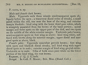 • Erstbeschreibung: Moore, F. [1866]: On the Lepidopterous Insects of Bengal. — Proceedings of the Scientific Meetings of the Zoological Society of London for the Year 1865: 755-823, pl. XLI-XLIII.