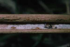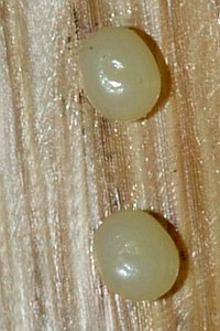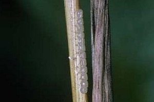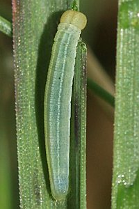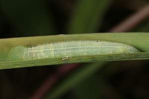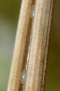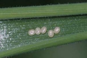Das passt gut zu den schon etwas älteren Angaben von Henriksen & Kreutzer (1982: 204) aus Skandinavien: "Several eggs can be laid on the same leaf of cat's tail grass (Phleum pratense), velvet grass (Holcus lanatus) and soft grass (Holcus mollis)."