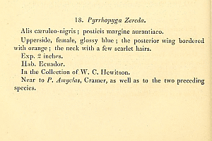 - Pyrrhopyga [sic] zereda Hewitson, 1866 [Originalkombination]