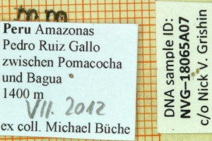 2: ♂, Peru, Junin, Chanchamayo, Pampa Hermosa Lodge, 1200 m, 19. Oktober 2011 (fot.: Kim Garwood, det. Bernard Hermier)