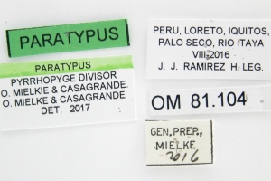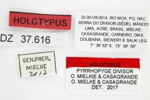 1-3: Holotypus ♂, Daten siehe Etiketten (fot.: Carlos Mielke, Fotos bearbeitet: Michel Kettner), coll. Departamento de Zoologia, Universidade Federal do Paraná, Curitiba, Paraná, Brazil.