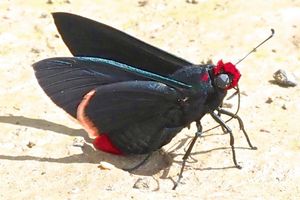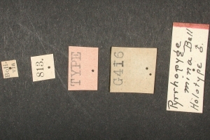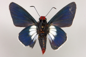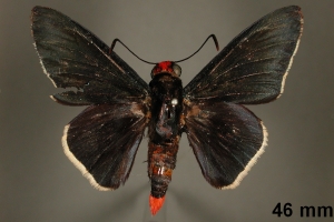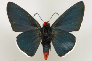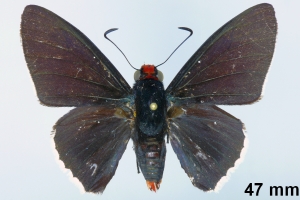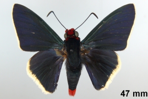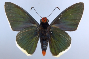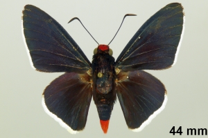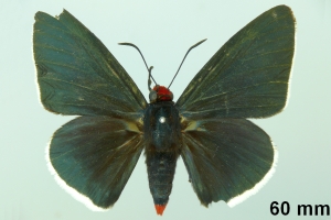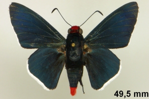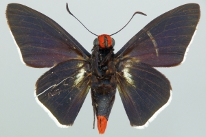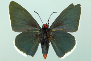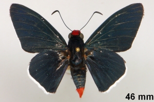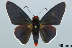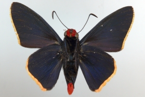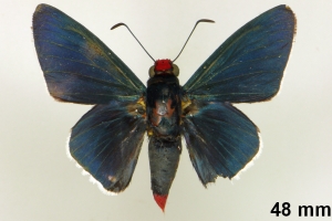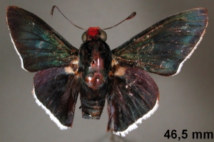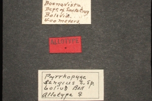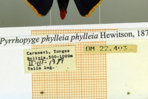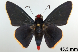 28-30: Holotypus ♂ von Pyrrhopyge sergius bolius Bell, 1947, Daten siehe Etiketten (fot.: Bernard Hermier, Fotos bearbeitet: Michel Kettner), coll. American Museum of Natural History. New York City.