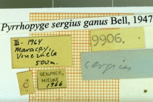 4-6: Paratypus ♀ von Pyrrhopyge sergius bolius Bell, 1947, Daten siehe Etiketten (fot.: Bernard Hermier, Fotos bearbeitet: Michel Kettner), coll. American Museum of Natural History. New York City.