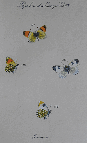 - Herrich-Schäffer, G. A. W. („1843“) [1843-1854]: Systematische Bearbeitung der Schmetterlinge von Europa, zugleich als Text, Revision und Supplement zu Jakob Hübner's Sammlung europäischer Schmetterlinge. Erster Band. Die Tagfalter: 1-164, Index 1-24, Papilionides pl. 1-133, Hesperides pl. 1-7. Regensburg (G. J. Manz).
