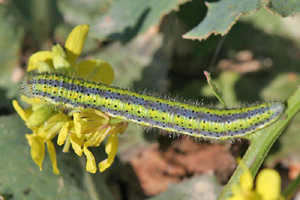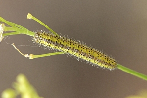 Wie fast alle Blüten befressenden Arten, ist die Raupe carnivor veranlagt.