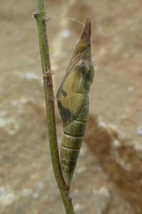 Die Raupe ernährt sich ausschließlich von den Blüten und Früchten ihrer Nahrungspflanzen. Dies sind verschiedene Kreuzblütler wie z. B. Brillenschötchen (Biscutella-spp.), Färber-Waid (Isatis tinctoria) und Hederich (Raphanus raphanistrum). Die frühe Flugzeit, die schnelle Entwicklung und das breite Spektrum von Arten, an welcher die Raupe frisst, erlauben in tieferen Lagen meist die Ausbildung von zwei Generationen. In sehr warmen und trockenen Regionen aber, wo die Pflanzenwelt bereits sehr früh im Jahr verdorrt, wird nur eine ausgebildet. Die Puppe, welche von der letzten Generation abstammt, überwintert. Sind die Bedingungen im nächsten Frühjahr ungünstig, ist es so trocken, dass die Nahrungspflanzen nicht erblühen, kann die Puppe – auch mehrmals – überliegen, also den Falter erst im darauffolgenden Jahr ergeben.