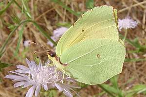 Eine zusätzliche Schwierigkeit, sind vor allem in Griechenland auftretende blassgelbe und zitronengelbe ♀ ♀ Vor allem letztere ähneln sehr den ♂ ♂ von G. farinosa und G. rhamni. Am ehesten lassen auch diese sich durch den orangen Wisch auf der Vorderflügel-Unterseite erkennen, da dieser den ♂ ♂ der beiden anderen Arten fehlt.