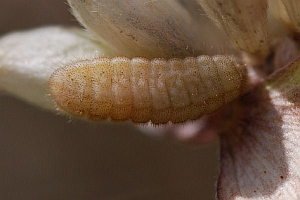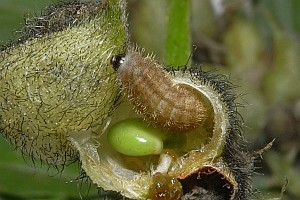 SBN (1987) meldet daneben auch Eiablage im Wallis an Blüten des Kichererbsen-Tragants; Wagner (2001) gelangen auf der Ostalb bei Heidenheim (Baden-Württemberg) eine Eiablagebeobachtung und weitere Eifunde an dieser Pflanze. Der oben gezeigte Raupenfund von Heidrun Melzer bei Jena (Thüringen) macht es wahrscheinlich, dass die seltene Pflanze - wo sie überhaupt vorhanden ist - durchaus regelmäßig zur Eiablage genutzt wird.