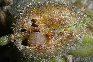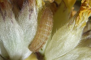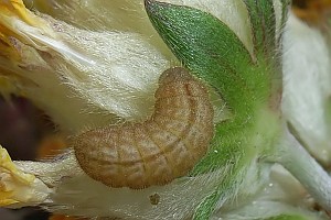 Ebert & Rennwald (1991) berichten über Raupenfunde von K. Walzinger im Kaiserstuhl in Hülsen des Blasenstrauchs, einer Pflanze, von der es auch eine Angabe aus Südtirol gibt und die in Südfrankreich regelmäßiger genutzt wird (z.B. J. Nel nach Lafranchis 2000).
