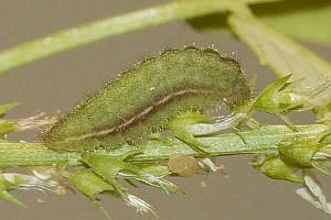 Der Falter bildet in Mitteleuropa drei bis vier Generationen aus, die von April bis September fliegen. Die 3. Gen. im August ist meist die mit Abstand häufigste. Das ♀ legt seine Eier an die Blütenknospen, bzw. an noch junge Blüten und an unmittelbar benachbarte junge Blätter. Die Raupe häutet sich drei Mal, sie ernährt sich überwiegend von Blüten und jungen Früchten. Die Raupe, die von der letzten Generation abstammt, überwintert voll ausgewachsen und verpuppt sich im nächsten Frühjahr ohne weitere Nahrungsaufnahme.