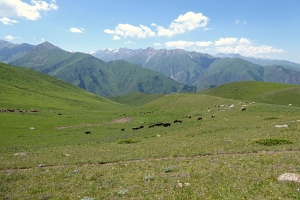 1: Kirgisistan, Oblast Tschüi, Nördlicher Tienschan, Kirgisischer Alatoo, Gebirge um Kegeti-Tal, beweidete alpine Matte, 2670 m, 2. Juli 2019 (fot.: Josef Kallmayer)Forum