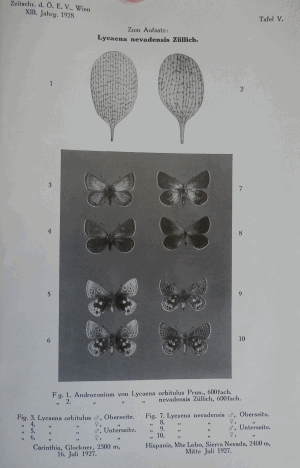 - Züllich, R. (1928): Lycaena nevadensis n. sp. — Zeitschrift des Österreichischen Entomologischen Vereins 13 (8): 73-75, pl. V.