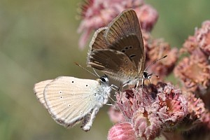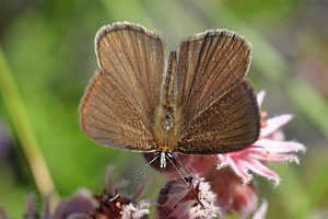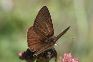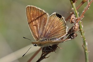 Männchen und Weibchen sind beide oberseits braun gefärbt, lassen sich jedoch gut unterscheiden, da die Männchen unterseits heller gefärbt und nach meinem Eindruck auch etwas größer sind. (Markus Dumke)