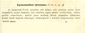 - Erstbeschreibung: Felder, R. (1868): Diagnosen neuer von E. Baron v. Ransonnet in Vorder-Indien gesammelter Lepidopteren. — Verhandlungen der kaiserlich-königlichen zoologisch-botanischen Gesellschaft in Wien 18: 281-286.
