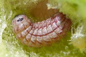 Bury & Savchuk (2015) berichten: "In Crimea caterpillars feed on Hedysarum candidum Bieb., Astragalus utriger Pall., and Astragalus suprapilosus Gontsch. Larvae are variable in coloration, with black head and a distinct, dark dorsal line. Larvae feed on flower buds, flowers and inside bloated pods that contain the seeds of Astragalus.