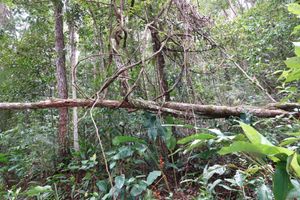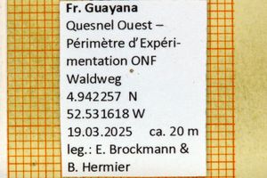 3: Französisch-Guayana, Quesnel Ouest, Périmètre d'Expérimentation ONF, Waldweg, ca. 20 m, 4.942257 N und 52.531618 W, 19. März 2025 (fot.: Ernst Brockmann)