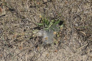 Im wärmeren Tiefland fliegt der Falter im Mai/Juni, in milden Küstenlagen Südeuropas vereinzelt schon ab Mitte März. In Nordeuropa, sowie im Gebirge beginnt die Flugzeit Mitte Juni oder Anfang Juli. In warmen Lagen des südlichen Alpenraums und in Südeuropa schließt sich noch eine partielle 2. Generation an, die je nach Lokalklima ab Mitte Juli bis in den August oder auch erst im August/September fliegt. Die jungen Raupen leben in einem gemeinschaftlichen Gespinst an Ehrenpreis (Veronica), Wegerich (Plantago-spp.) oder Leinkraut (Linaria vulgaris), in dem sie nach der 3. oder 4. Häutung auch überwintern. Im Frühjahr verlassen sie das Gespinst und fressen dann an allerlei krautigen Pflanzen, notfalls sogar an Süßgräsern. Die unverwechselbaren schwarzen Raupen mit dem rotbraunen Kopf können dann oftmals in Wiesen oder Weiden angetroffen werden. In steinigem, vegetationsarmen Gelände fallen sie besonders auf, wenn sie in Gruppen die wenigen Nahrungspflanzen abfressen. Insgesamt häuten sich die Raupen sechs bis sieben Mal.