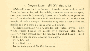 - Erstbeschreibung: Hewitson, W. C. (1864): Descriptions of New Species of Diurnal Lepidoptera. — The Transactions of the Entomological Society of London. Third Series 2: 245-249, pl. 15-16.
