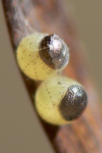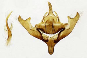 Sexualdimorphismus: Beim ♀ sind die cremefarbenen Bereiche größer als beim ♂. Besonders deutlich wird dies um die Augen auf Vorder- und Hinterflügel. Zudem ist das ♀ rundflügeliger als das ♂, bei dem zusätzlich der Apex etwas spitzer und der Vorderflügel schmaler ist. (Autor: Rainer Roth, Bestätigung: Jürgen Hensle)