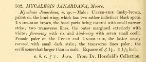 • Erstbeschreibung: Horsfield, T. & F. Moore (1857): A Catalogue of the Lepidopterous Insects in The Museum of The Hon. East-India Company. Vol. I.: i-v, 1-278, appendix I-IV, index 1-11, pl. I-XII, pl. Ia-VIa. London (Wm. H. Allen and Co.).