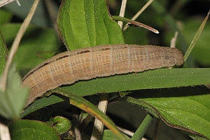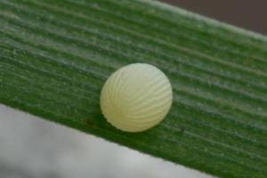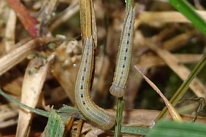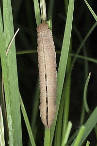 Die Eiablage erfolgt an Gräsern an offenen, fast vegetationslosen Stellen oder erstzweise an die Rinde von Bäumen in der Wiese. Die Raupe überwintert jung und verpuppt sich in einem lockeren Gespinst in der obersten Bodenschicht oder in einem Graswurzelballen.
