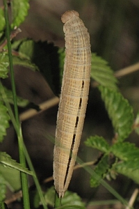Die Raupe von H. fagi hat eine schwache, unterbrochene dunkle Rückenlinie. Sie ist lediglich im hinteren Drittel durchgängig angelegt. Dahingegen ist die Rückenlinie bei der Raupe von H. alcyone durchgängig gezeichnet, so dass beide Arten im Larvalstadium problemlos und sicher zu unterscheiden sind.