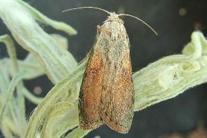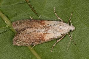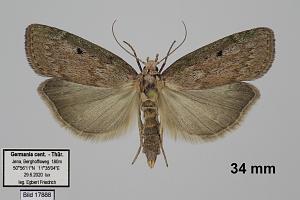 Die ♂ ♂ haben im Gegensatz zu den ♀ ♀ insbesondere keine vorstehenden Palpen und keinen schwarzen Punkt auf den Vorderflügeln. (Autor: Karola Winzer) [Forum]