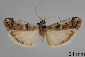 1-2: Palästinensiche Autonomiegebiete oder Israel, Daten siehe Etikett (fot.: Michel Kettner), coll. ZSM, "Pröse-Sammlung" [Achtung: Fehlbestimmung ! Leo Vähätalo (e-Mail 24.10.2025) merkt an: "= Phycitinae sp. The figured specimen is clearly different from those figured in Slamka vol. 4 (figs. 32a-d)."]