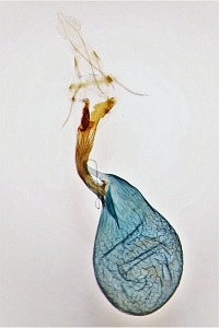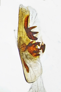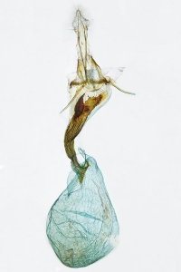 1: Genitalpräparat des oben abgebildeten weiblichen Falterbelegs 1, Daten siehe dort (Präparation, det. & Foto: Friedmar Graf)Forum